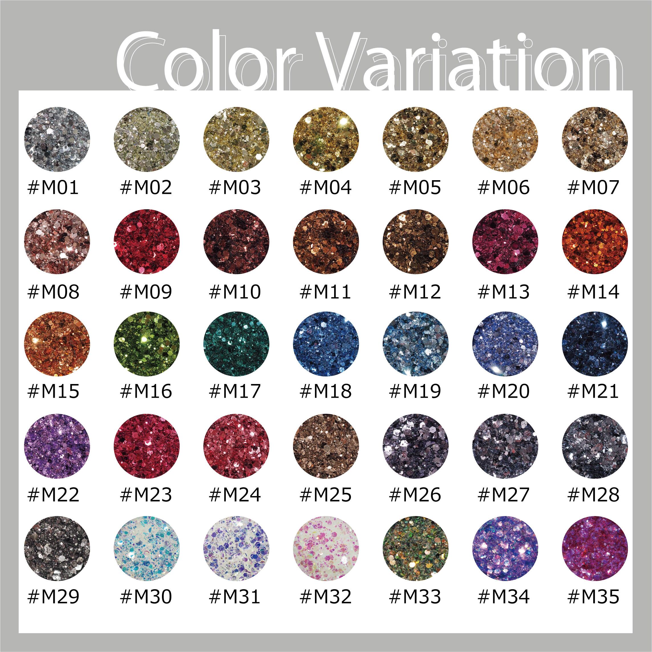 同色で5サイズのグリッターがミックスされています。